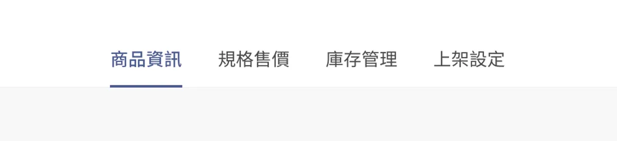 建立好商品後,進入到商品的編輯頁面可以看到分別有以下四個頁面可以進行編輯
