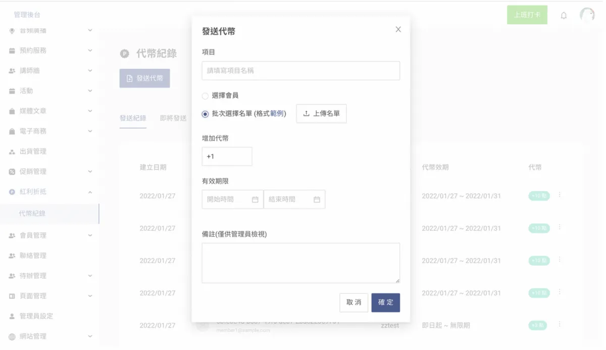 🌟若名單內新增的email 不是原本站上的會員,系統則會將其email自動註冊為會員