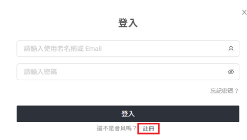 預設為登入功能畫面,請點選下方「註冊」按鈕。