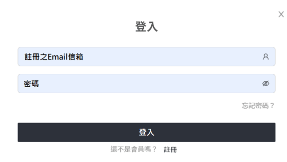輸入註冊成功的Email信箱及密碼,點擊「登入」即可。