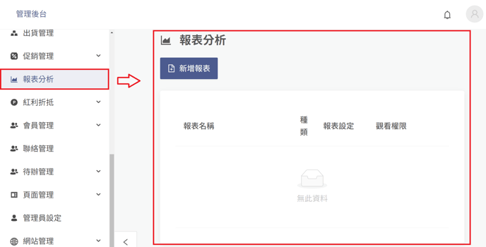 1. 請跟 Anna 確認後台「報表分析」模組開啟